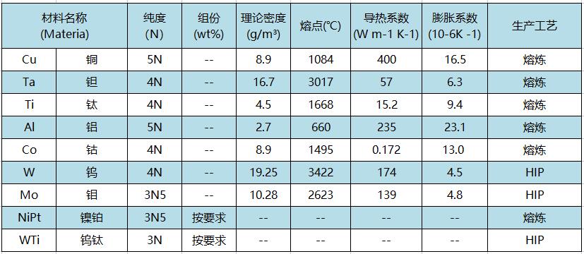 燦元在半導體及微電子領域中主要提供以下靶材產品: